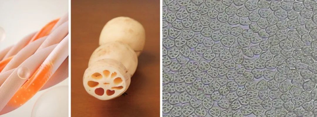 通过模拟北极熊毛结构,我们创新研发了仿莲藕植物结构中空纤维。该技术利用特殊纺丝工艺,在涤纶纤维内部创造贯通管状中空结构,增加静止空气层,显著提升抗弯强度与保暖性。莲藕多孔设计不仅提升中空度,还确保结构稳固,不受加工影响。该纤维集保暖、轻量、吸湿排汗、透气于一体,赋予衣物挺括形态与卓越穿着体验。